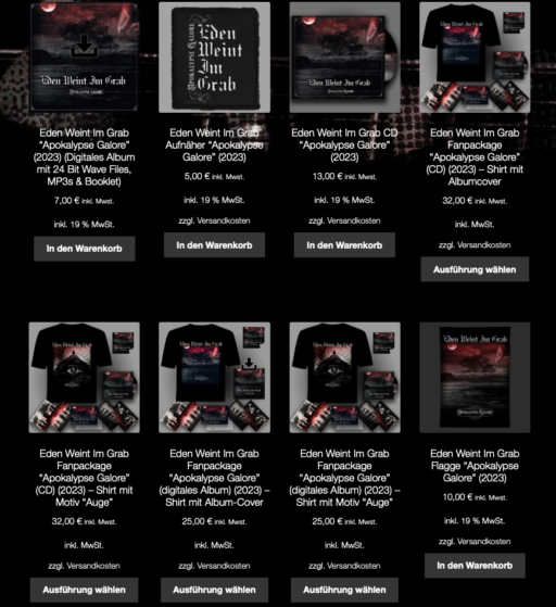 Unser bandeigener Merch-Shop mit Shirts, Girlys, Hoodies, Zipper, CDs, Aufnäher, Fanpackages u.v.m.